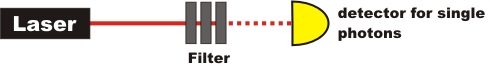 Many elementary texts on quantum physics are using the following example as a demonstration of single photons (see figure 1): A light source, for example a laser, is strongly attenuated by a filter. A detector sensitive to single photons is registering events. Such a setup is then extended with a double slit, an interferometer, etc. for showing interference of single photon “particles”. However, such an interpretation in terms of basic (nonrelativistic) quantum physics is not valid.