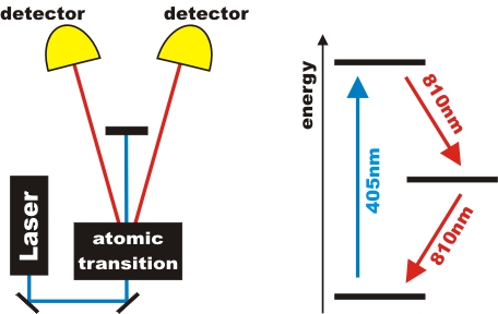 Figure 3: Generation of photon pairs in an atomic cascade transition.